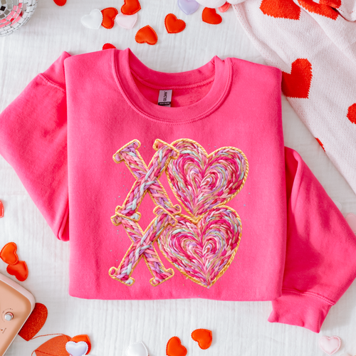 White Striped Trim Bow Graphic Round Neck Drop Shoulder Sweater