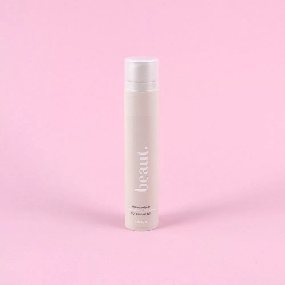 beaut.’s Coconut Whitening Toothpaste—a clean, non-toxic formula crafted to naturally whiten, strengthen, and refresh. Infused with coconut extract and powered by ingredients that support a healthier smile, this gentle formula removes surface stains without harming enamel and leaves your breath island-fresh.