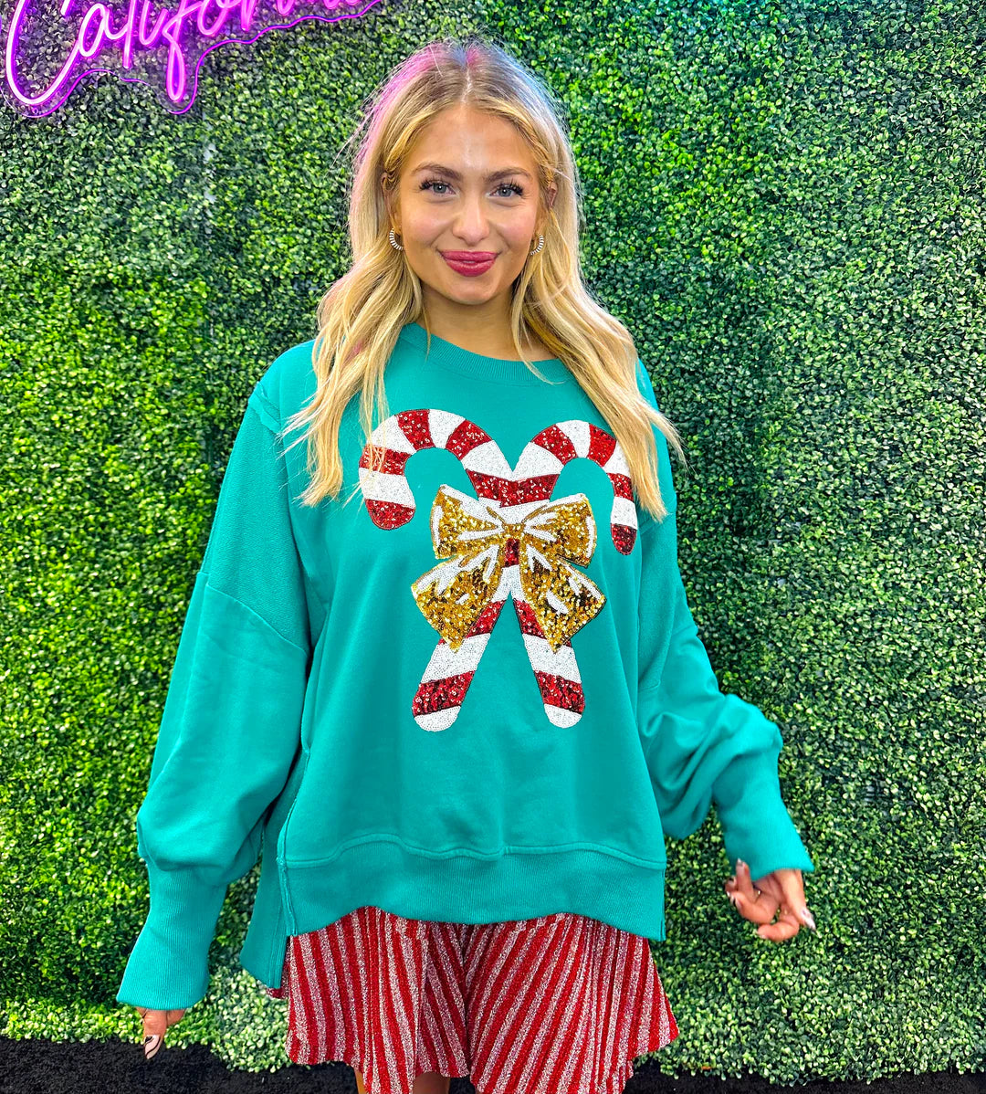 This Black Friday, look festive in our sparkly candy cane top. Made with a comfortable and lightweight fabric, this top will add a touch of holiday cheer to your wardrobe. The glittery candy cane design is perfect for any holiday event. Get yours now and spread the holiday spirit!