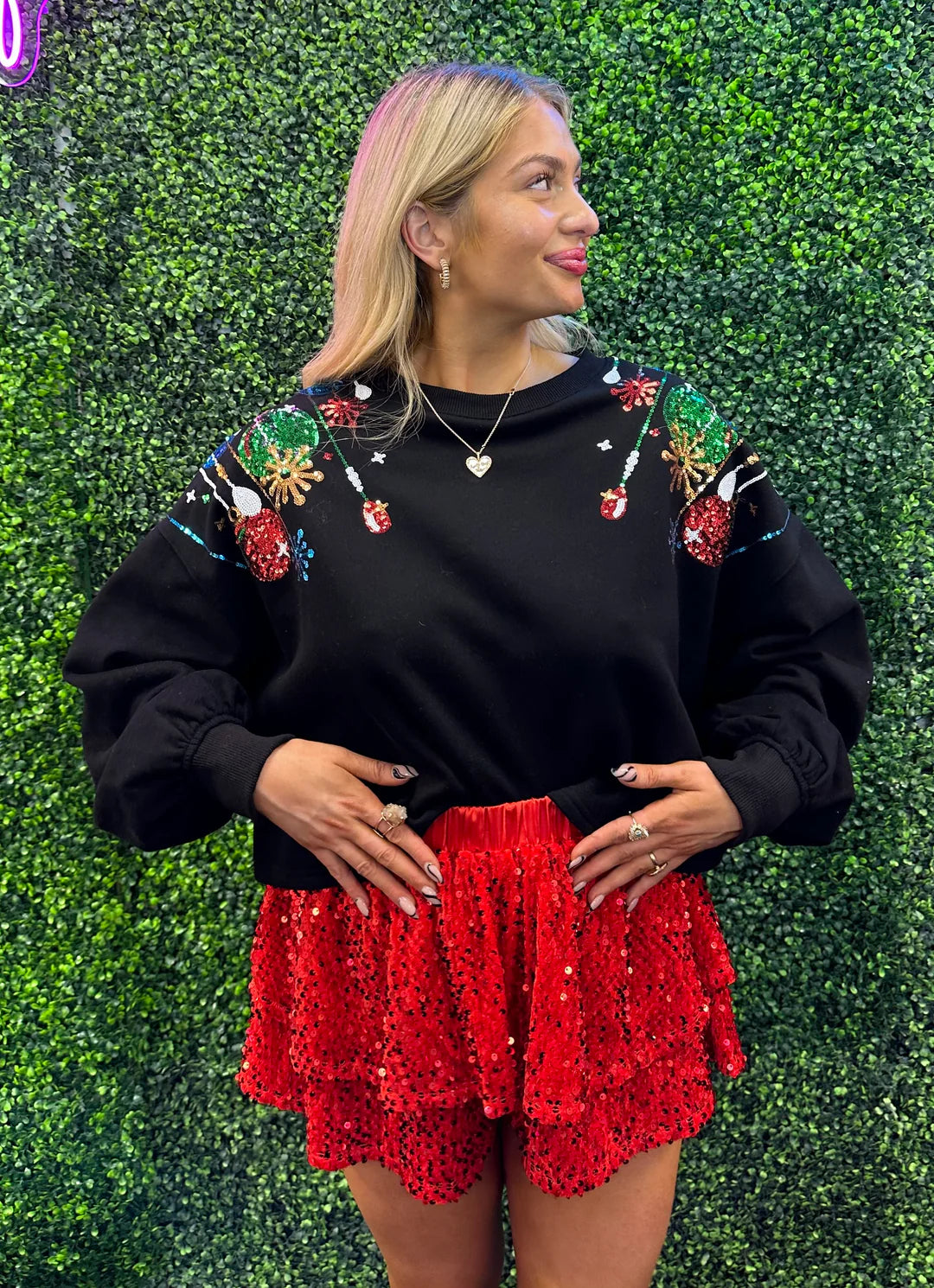 Expertly designed with sequin detailing, this top is the perfect statement piece. Available in both red and cream, it adds a touch of elegance to any outfit. Don't miss out on this unique and eye-catching top.