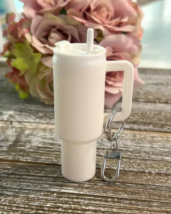 The cutest little keychain has arrived and it's a must have!                                              These cute little cups measure approximately 3-3/4" x 2".