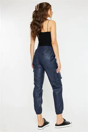 High Waist Faux Leather Cargo Jogger