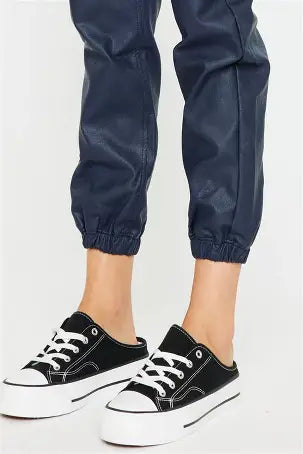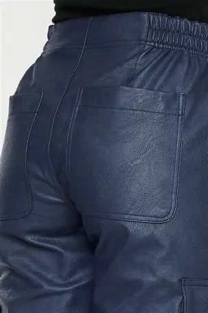 Elevate your loungewear game with these sleek navy faux leather cargo joggers! Designed with a high waist that flatters your silhouette and built-in tummy control for all-day confidence, they're the perfect blend of comfort and style. The cargo pockets add practical flair, while the soft faux leather gives you that edgy-chic vibe without the fuss. Whether you're running errands or keeping it cozy at home, these joggers are your new go-to for looking put-together effortlessly.
