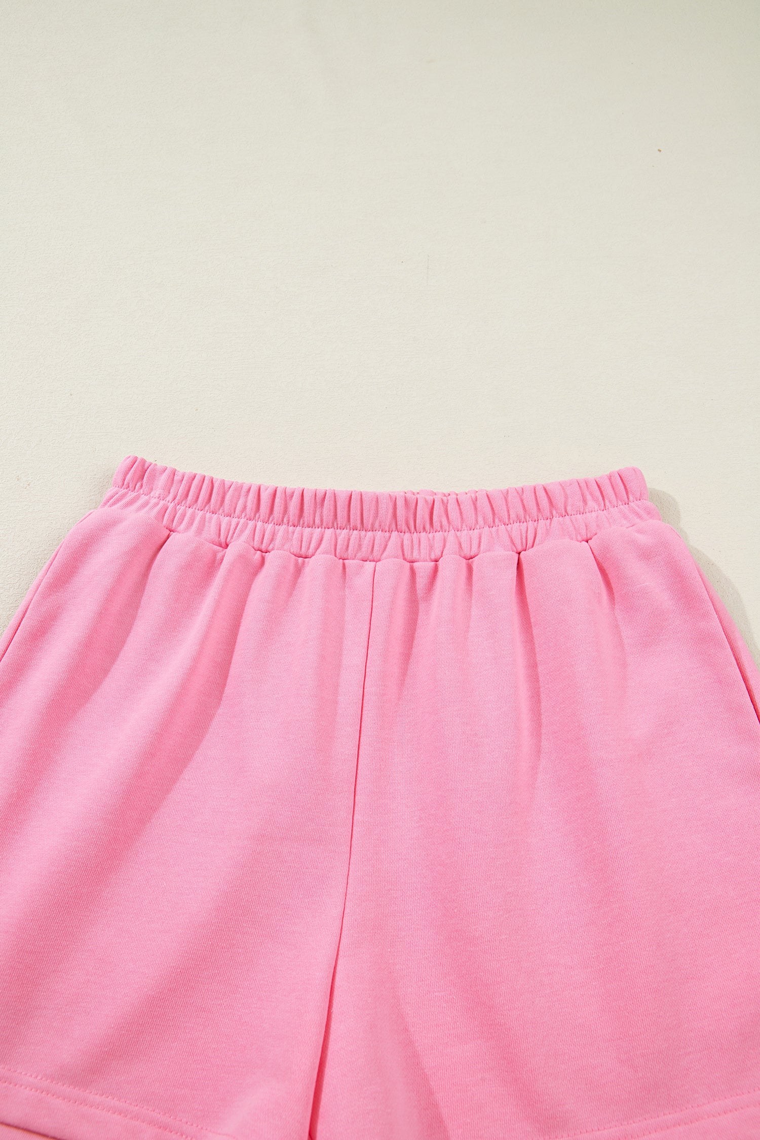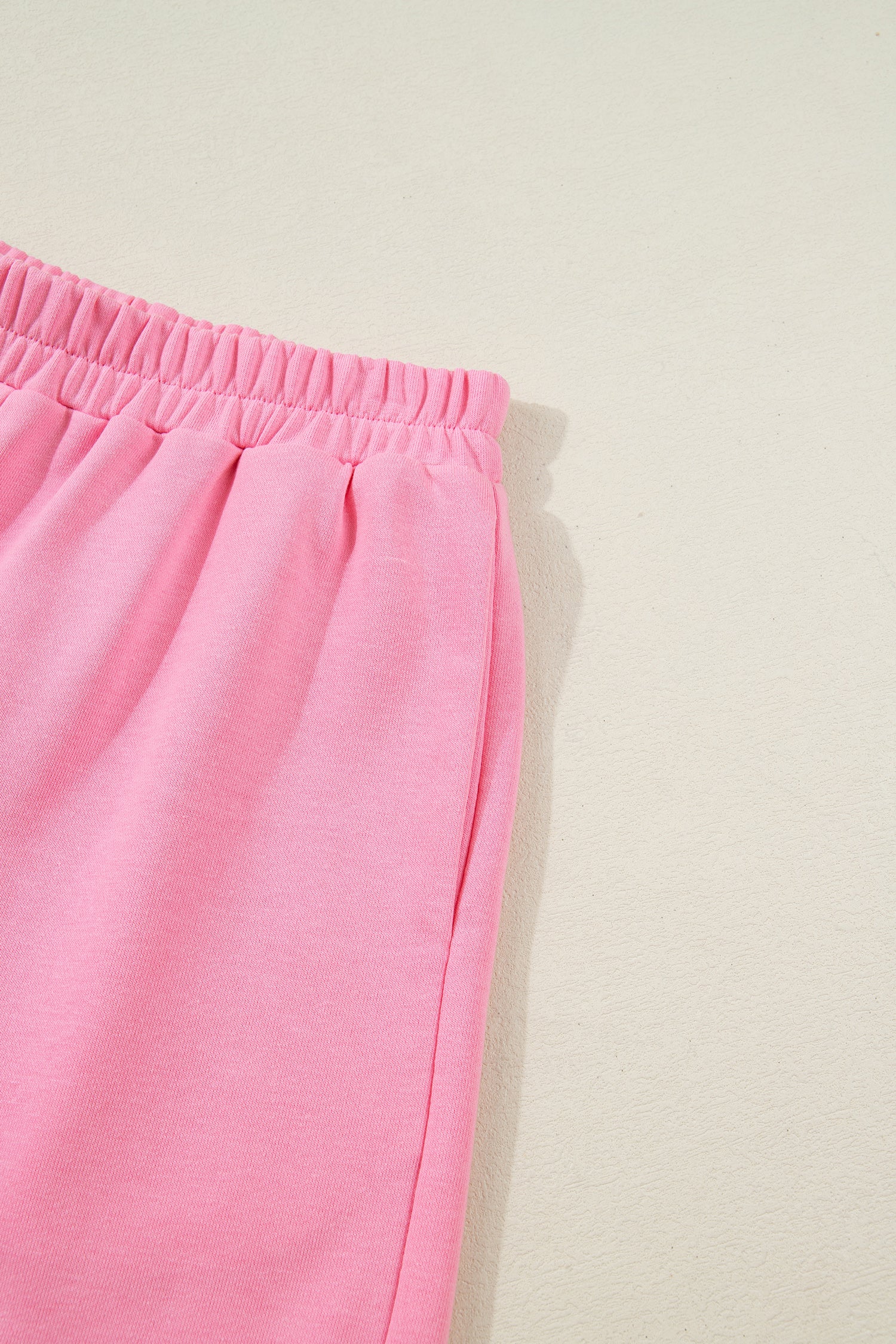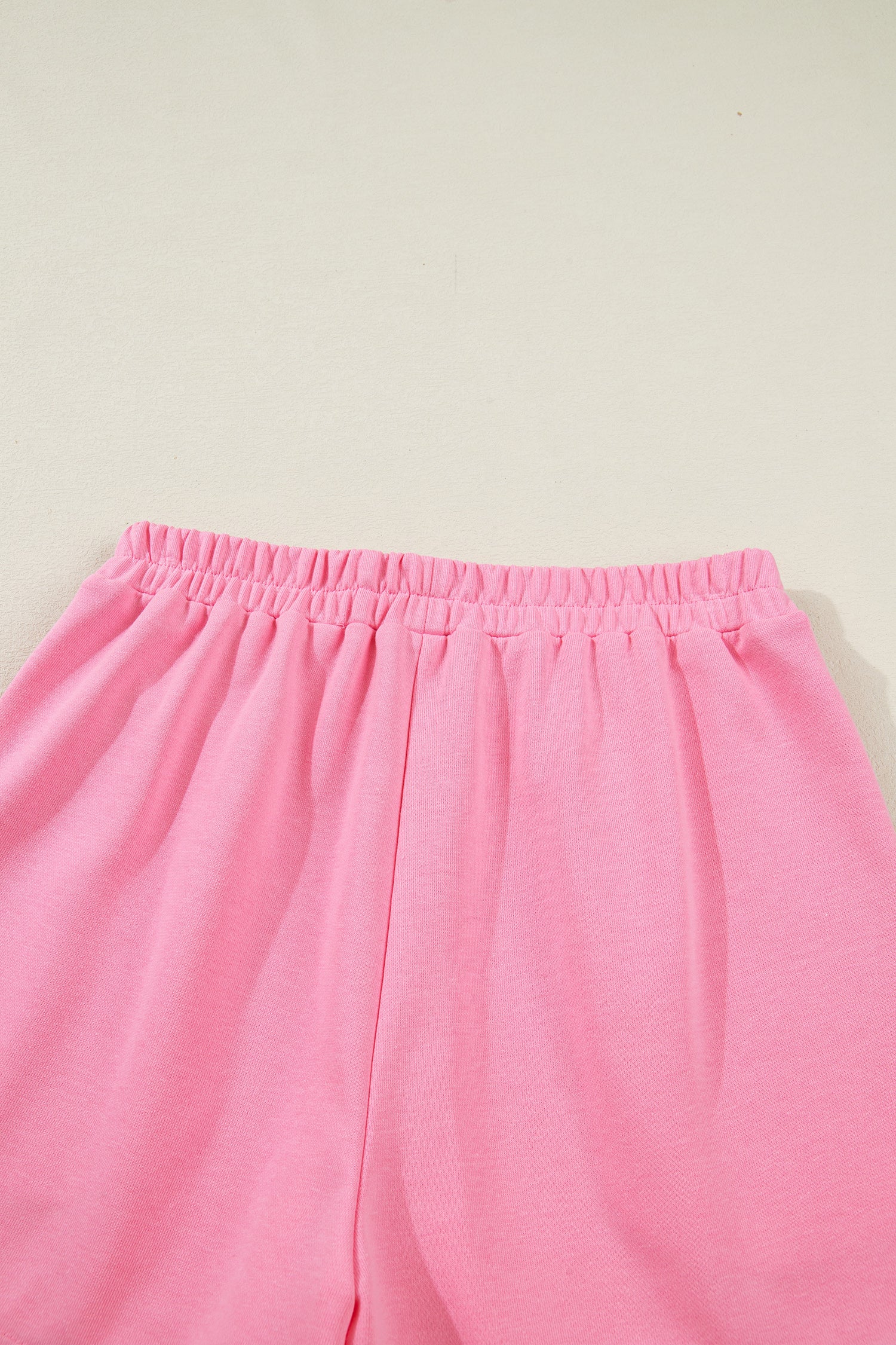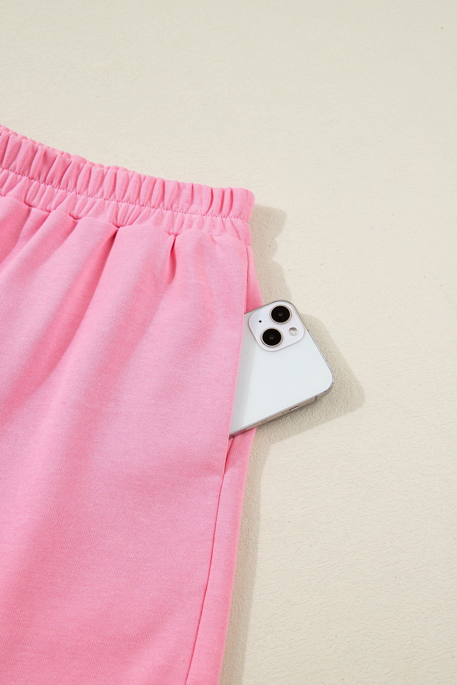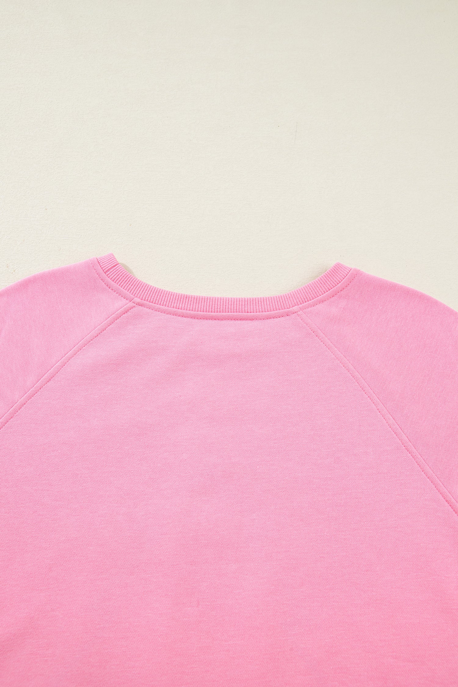 Sachet Pink Plaid Contrasted Double Christmas Tree Patched Raglan Sleeve Pullover 2pcs Short Set