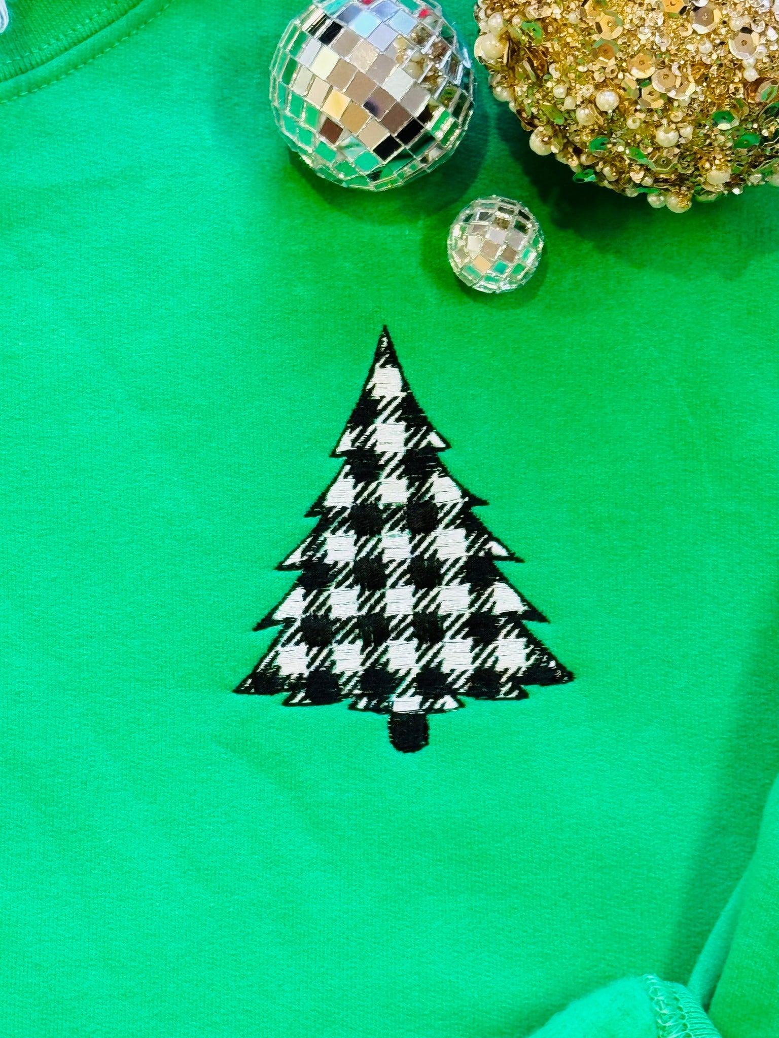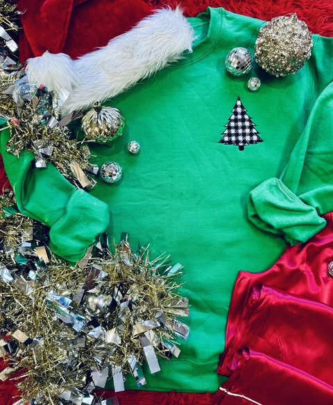 Embroidered Checkered Christmas Tree Sweatshirt