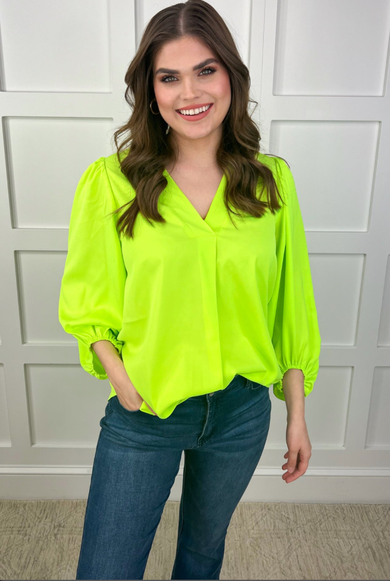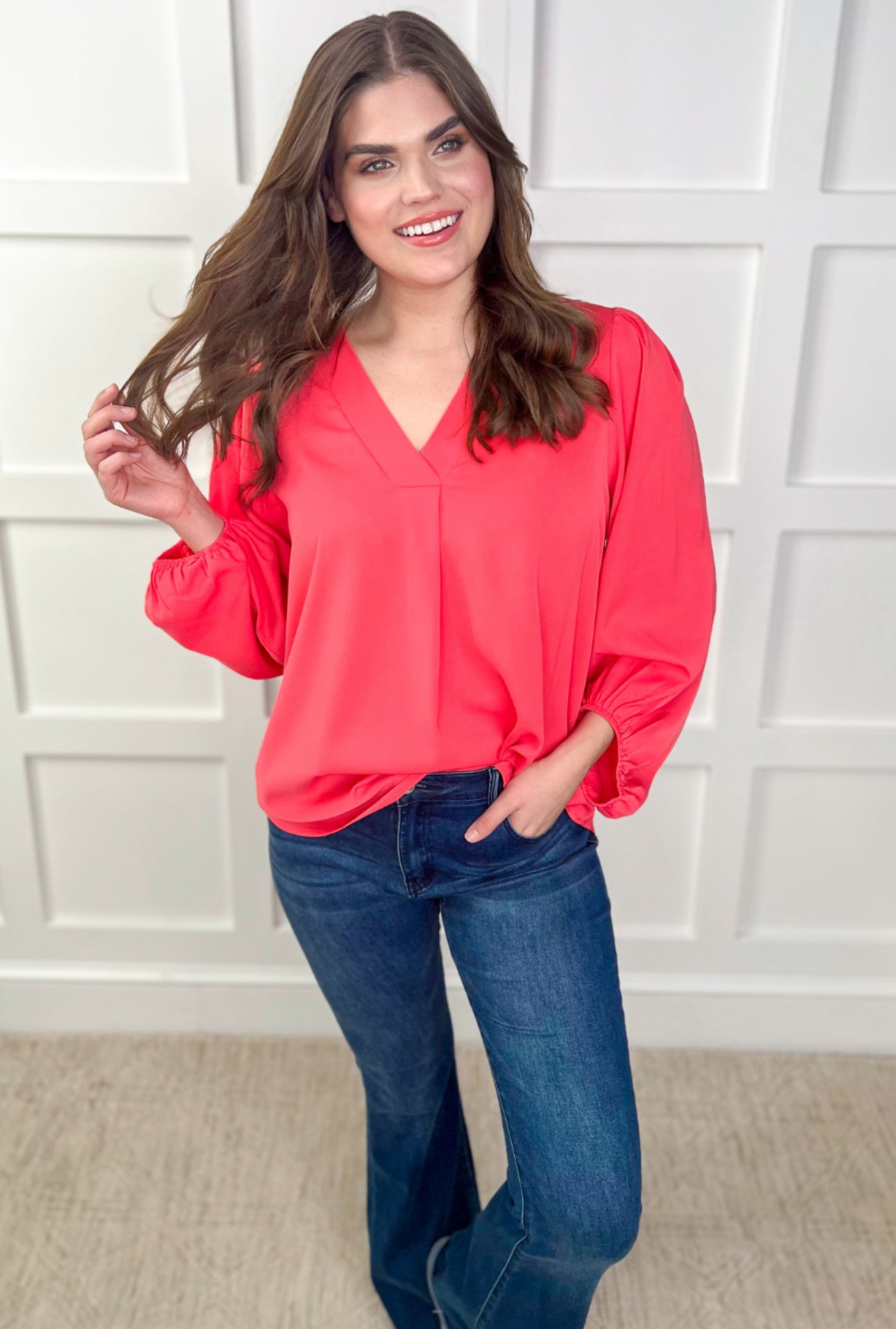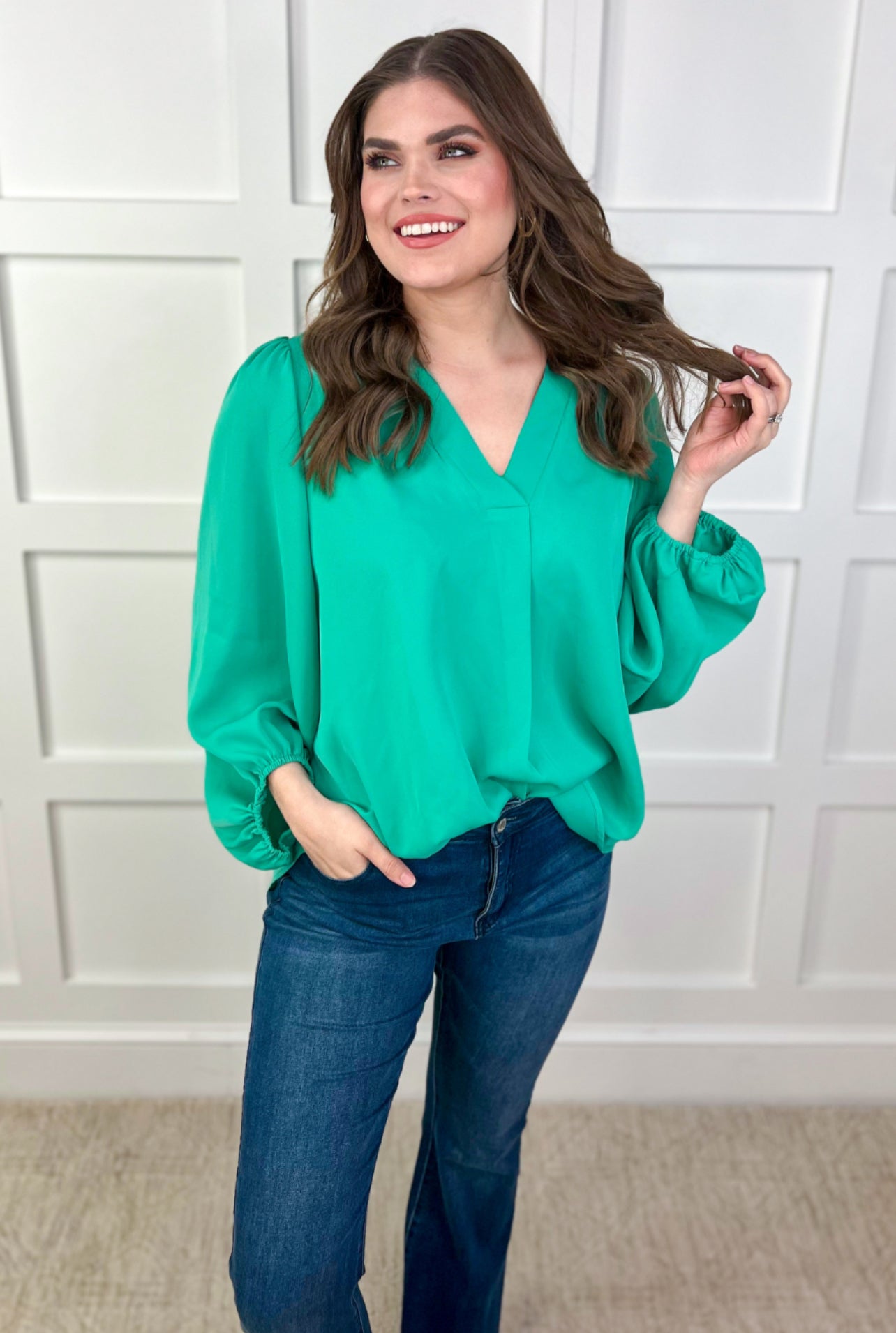 This classic & comfy top is just what you are needing in your closet. It features long balloon sleeves, a super soft fabric, and an overlapping v-neck neckline. You will not be disappointed in this gorgeous top!