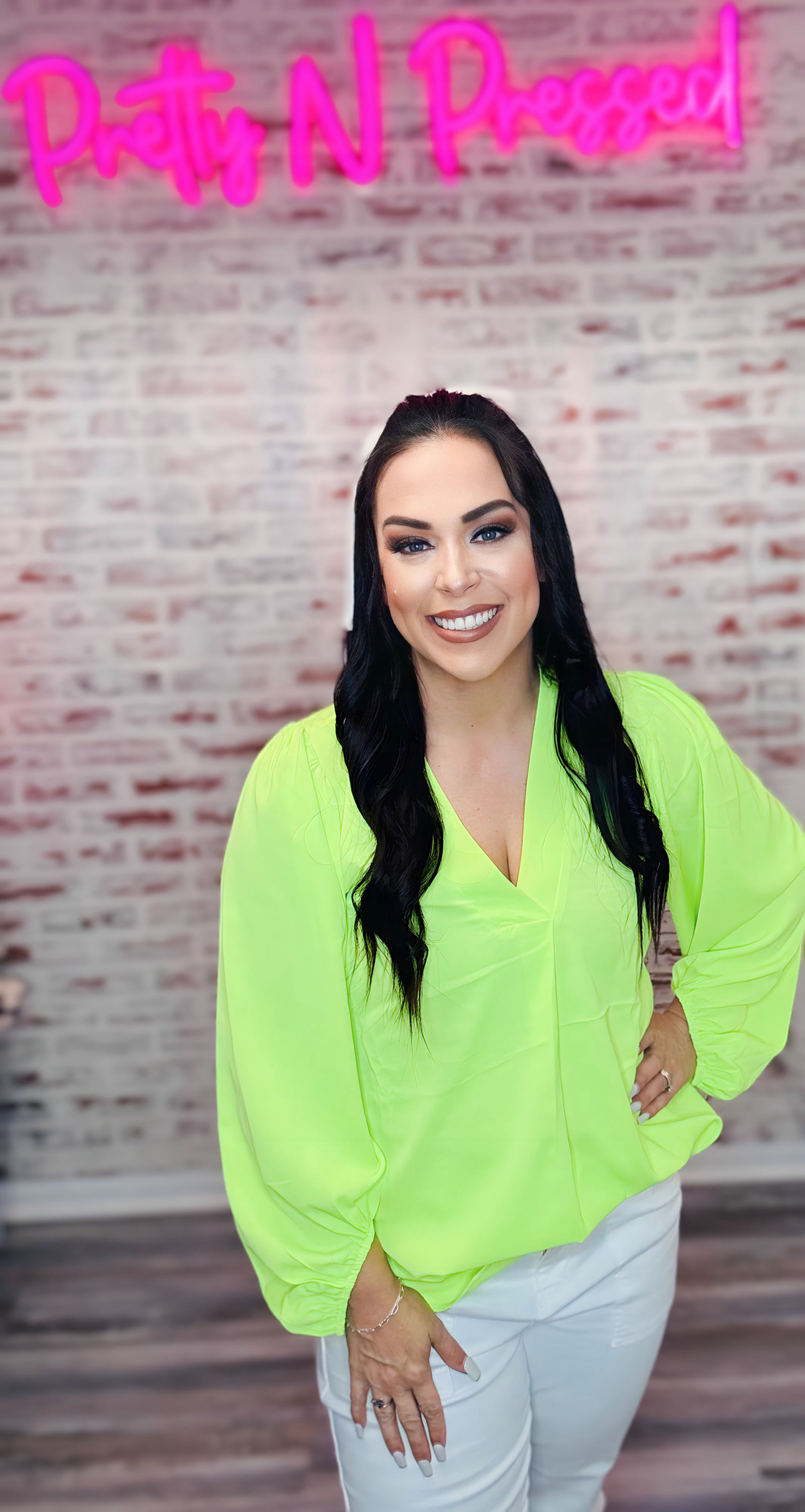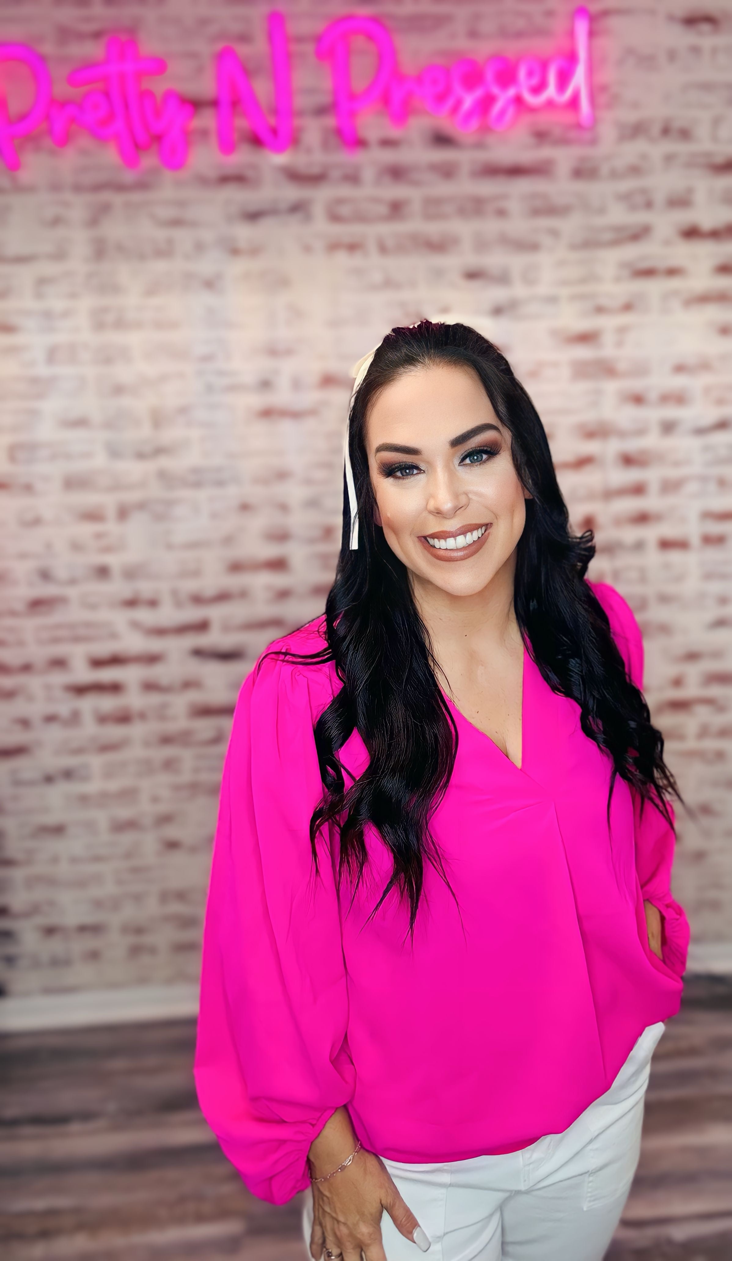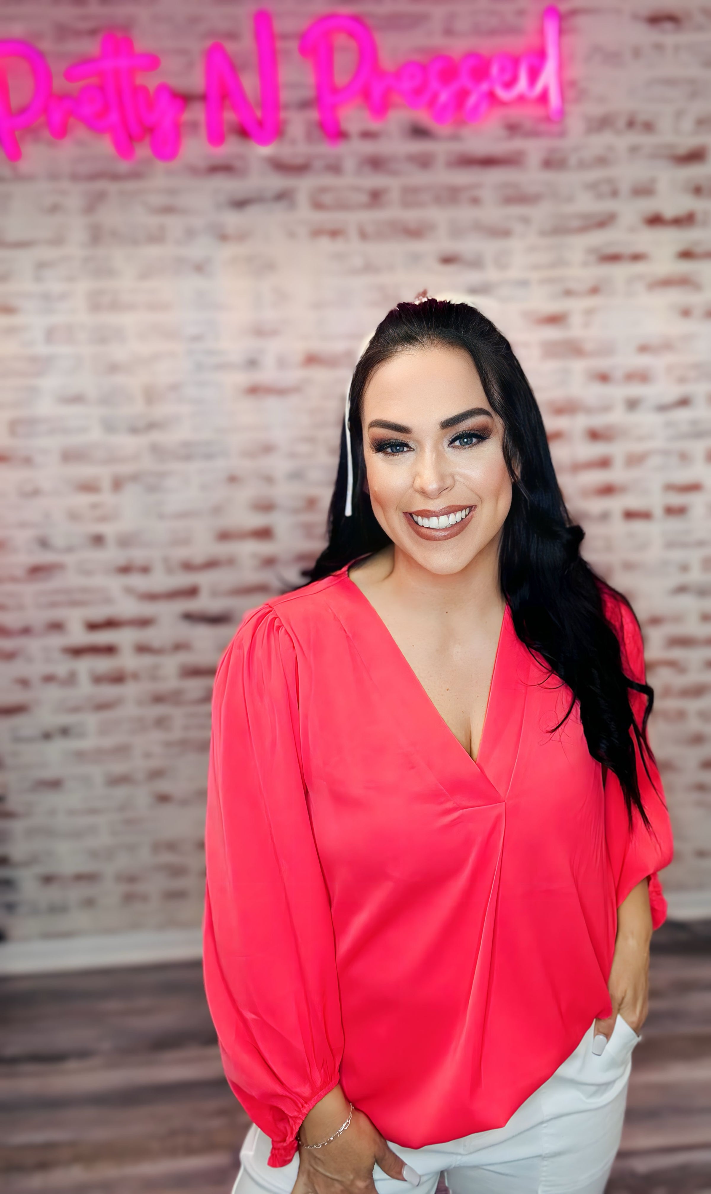 This classic & comfy top is just what you are needing in your closet. It features long balloon sleeves, a super soft fabric, and an overlapping v-neck neckline. You will not be disappointed in this gorgeous top!