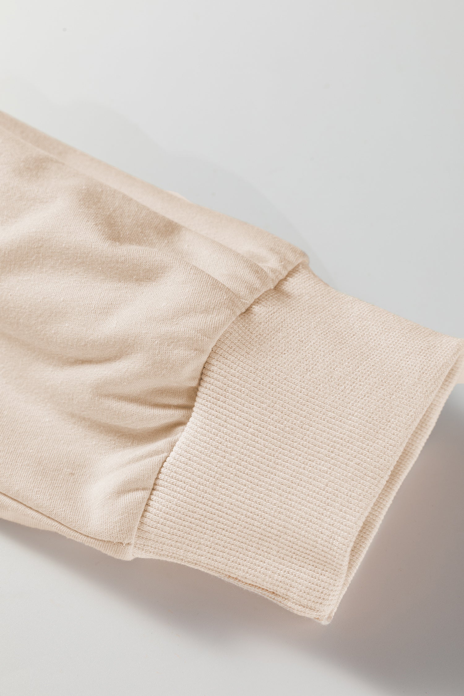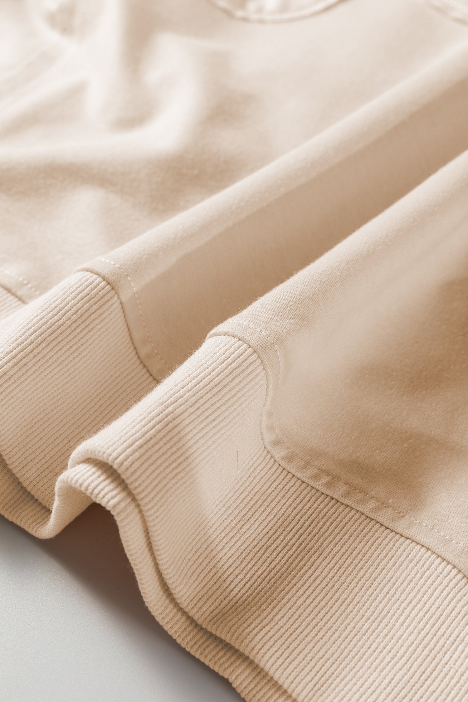 Beige Flower Patched Mineral Wash Round Neck Plus Size Top