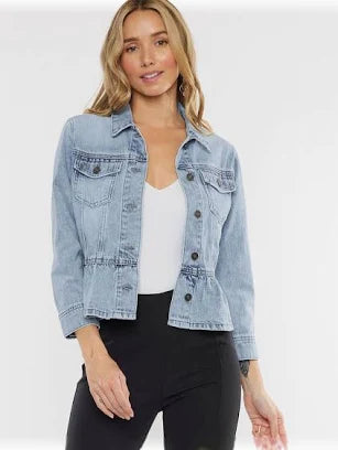 Channeling timeless denim vibes with a modern twist, the Billie Jean Jacket brings effortless cool to your everyday rotation. Crafted from 100% cotton in a sturdy 10.4oz rigid fabric, this classic fit peplum style flatters every frame with its structured silhouette. The light stone wash gives it that perfectly broken-in look without the wait. At 21" in length, it hits just right for layering over everything from tees to dresses. Whether you're channeling retro energy or just need a jacket that does it all, this denim essential is ready to become your new favorite.