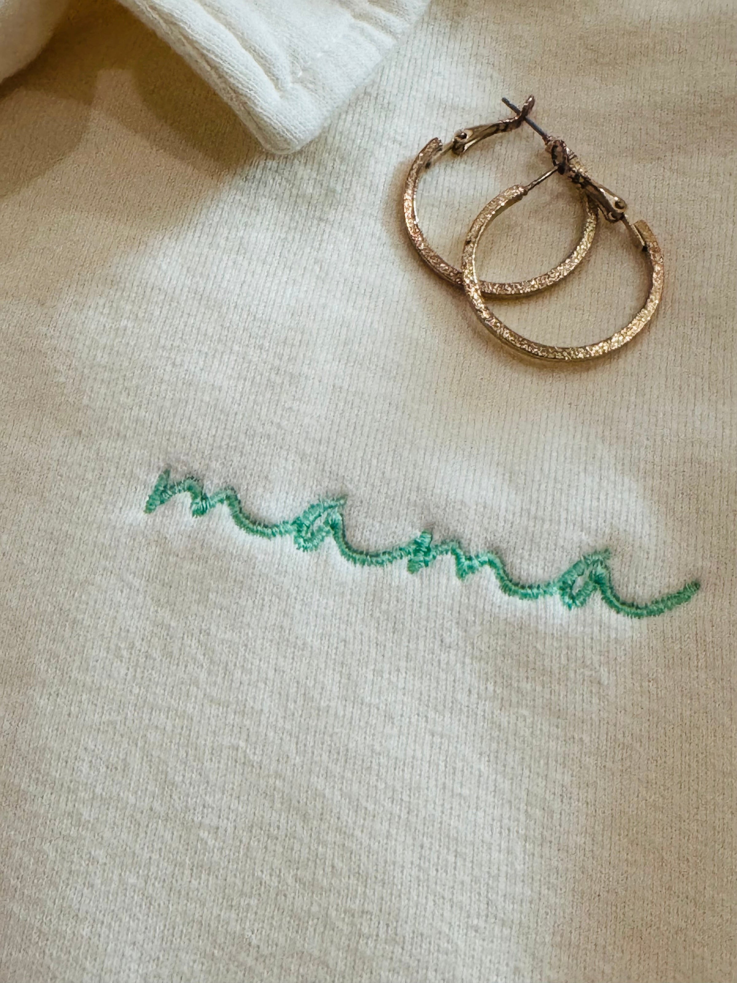 Ivory Dainty Mama Embroidered Split Neck Sweatshirt