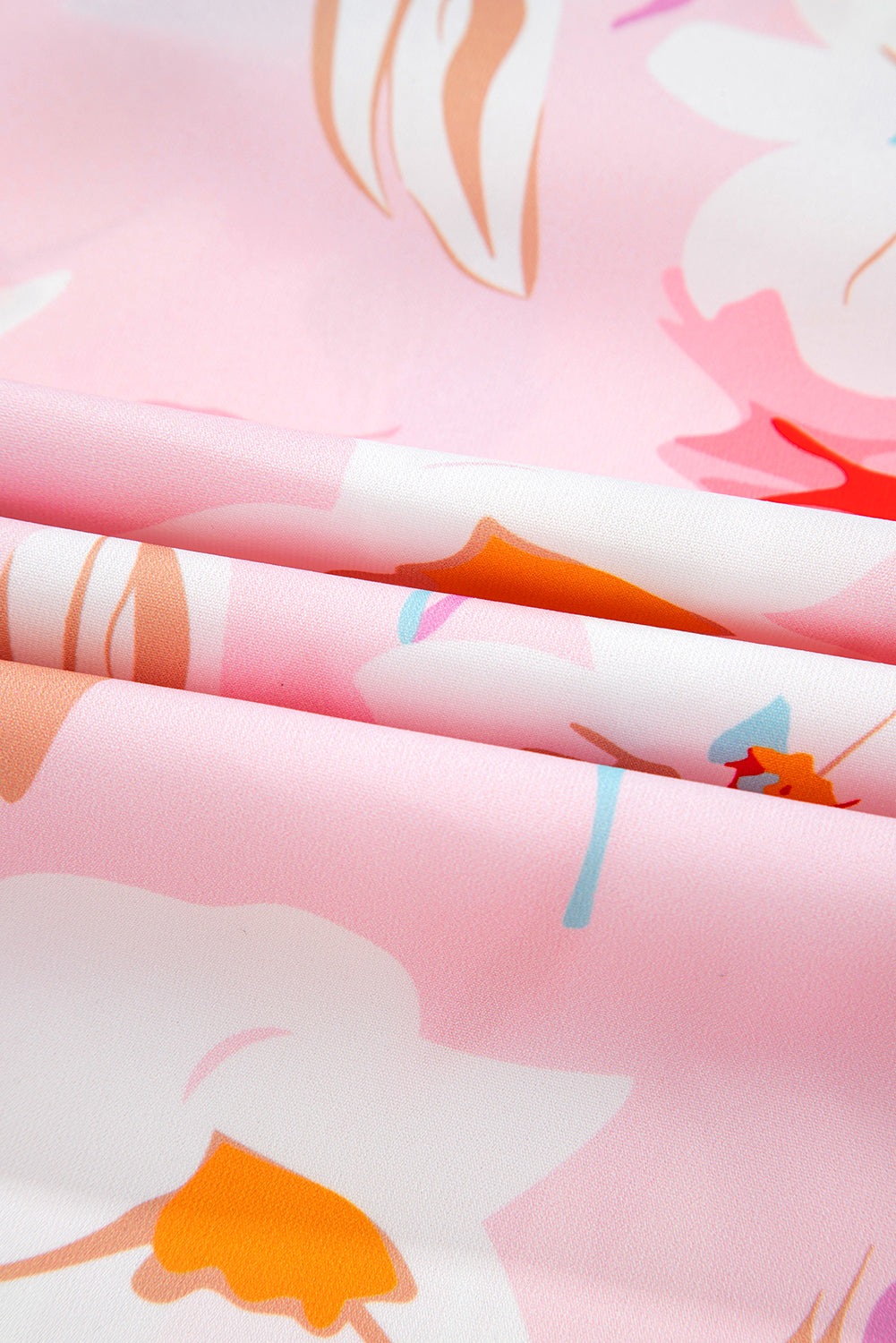 Multicolour Contrast Floral Patchwork Notched Neck Flutter Sleeve Blouse