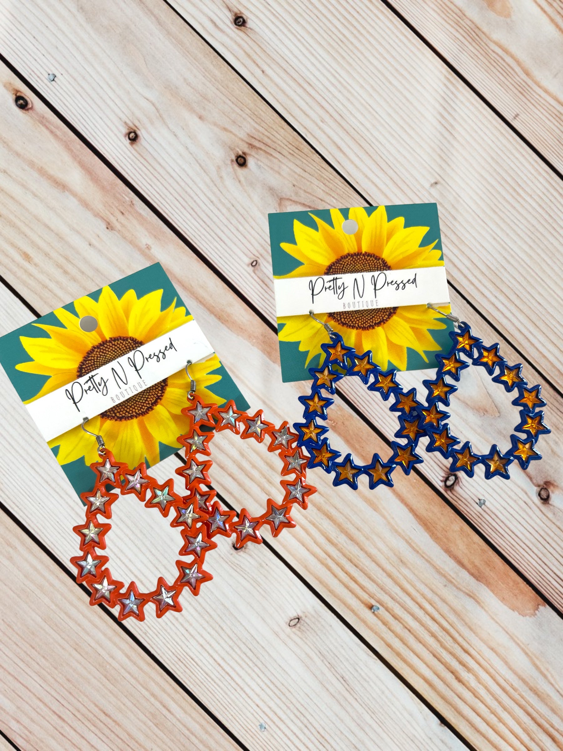 Show your hometown pride with these 🌟 Shooting Stars Earrings! Perfect for when you’re catching an Astros game (or just want to show home state lovin’ any day). In either vibrant blue or orange, these stellar earrings are guaranteed to make a 💫 statement. Strike out for style with these one-of-a-kind earrings!