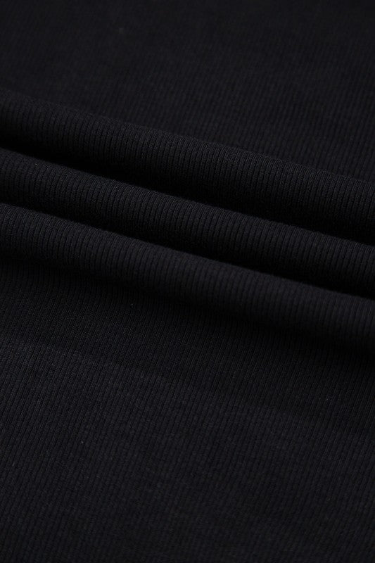 Solid Ribbed Leatherette Ruffle Sleeve Bodysuit